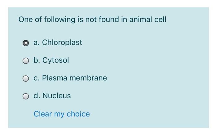 Which of the following are not found in animal cells. Check spelling or type a new query. We did not find results for: Maybe you would like to learn more about one of these?